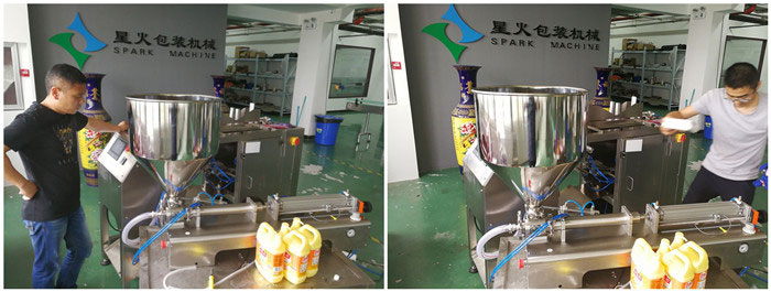 自立袋洗衣液自動(dòng)包裝機(jī)客戶(hù)調(diào)試現(xiàn)場(chǎng):