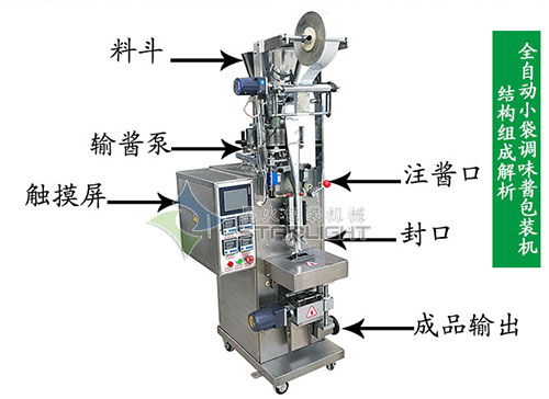 全自動(dòng)小袋調(diào)味醬包裝機(jī)-辣醬油包裝機(jī)結(jié)構(gòu)組成: