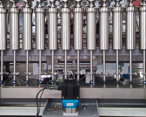 1、采用PLC編程控制,伺服電機(jī)驅(qū)動(dòng)穩(wěn)定的雙絲杠傳動(dòng)機(jī)構(gòu),確保了活塞運(yùn)動(dòng)行程高精度,實(shí)現(xiàn)了精卻灌裝。采用滾珠絲杠和導(dǎo)柱兩側(cè)安裝、滾珠絲杠與升降橫梁分體聯(lián)接的方式,滾珠絲杠更換非常方便,單人即可拆裝且無需拆卸升降橫梁。目前別的廠家都是采用在升降橫梁中間安裝絲桿的結(jié)構(gòu),絲桿更換時(shí)非常困難,要在幾個(gè)人的配合下整體拆卸才能完成。