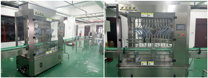 星火廠房十二頭直流式液體灌裝機(jī)展示: