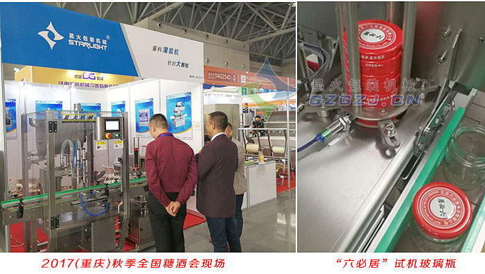 星火參展2017年第97屆秋季(重慶)全國糖酒會現(xiàn)場及北京六必居食品公司采購全自動醬料灌裝真空旋蓋生產(chǎn)線所用試機玻璃瓶。