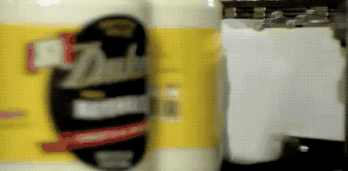 轉(zhuǎn)盤貼標(biāo)機(jī),機(jī)器貼商標(biāo)很好玩兒,商標(biāo)紙一側(cè)有膠水,貼住罐子以后,機(jī)器帶動(dòng)罐子轉(zhuǎn)一圈兒,商標(biāo)紙就卷到罐子上了。