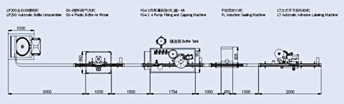 1、LP20O全自動理瓶(GP62)圓盤供瓶機 2、QX-4塑料瓶的凈化氣洗瓶機 3、YG4/1四泵液體灌裝旋(軋)蓋-體機 4、FL電磁感應(yīng)鋁箔封口機 5、LT不干膠貼標機