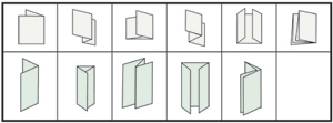 原理及特點(diǎn): DZ系列自動(dòng)折紙機(jī)設(shè)計(jì)先進(jìn)、制造精良、可用于設(shè)計(jì)范圍內(nèi)各種不同尺寸和厚薄紙張的折疊、可折成圖例所示六種式樣。調(diào)整簡(jiǎn)便,送紙流暢,無(wú)級(jí)調(diào)速,輕巧高效。